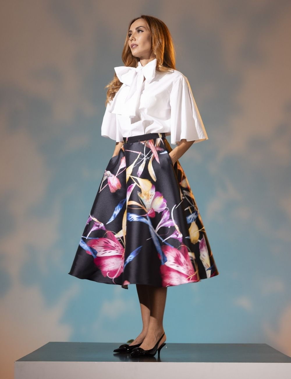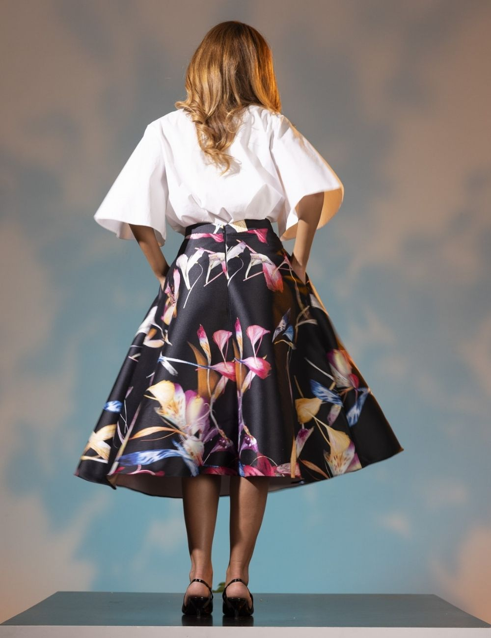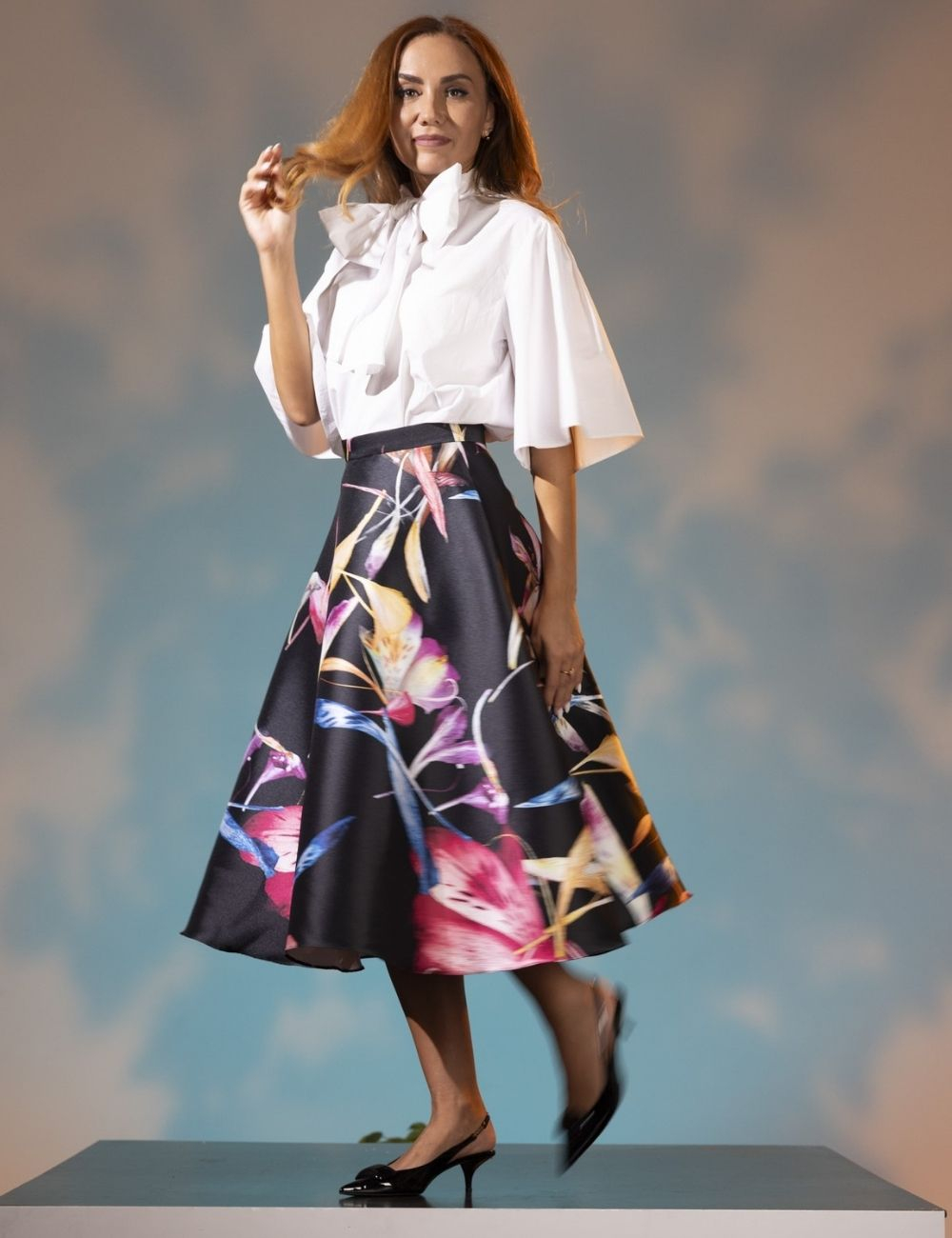- Fustă midi din tafta Mykado cu imprimeu 3D.